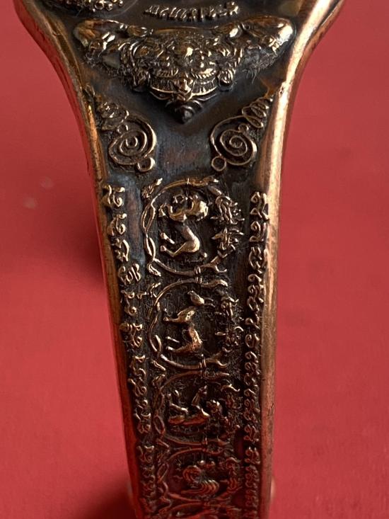 เคาะเดียวแดง กำไล องค์พ่อจตุคาม-รามเทพ รุ่นมงคลจักรวาล เนื้อสำริด เลข 525