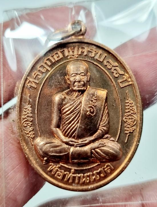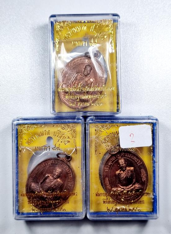 เหรียญมงคลเจริญปริสุทโธ มหาเมตตา๘๘ ที่รฤกเจริญอายุวัฒนมงคล ๘๘ ปี หลวงพ่อนวล วัดไสหร้า เนื้อทองแดงผิวไฟ 3เหรียญ (2)