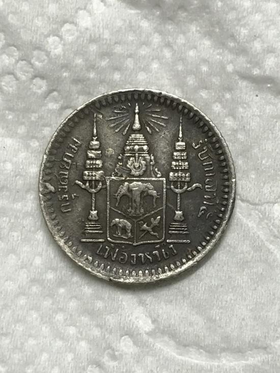 เหรียญ เฟื้องหนึ่ง เนื้อเงิน ร.5 หลังตราแผ่นดิน