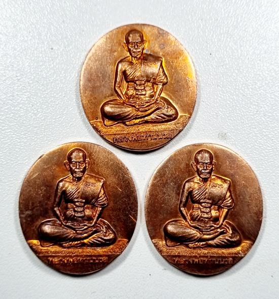 เหรียฟยฉลองอายุ83ปี พ่อท่านนวล วัดไสหร้า เนื้อทองแดงผิวไฟ 3เหรียญ (2)