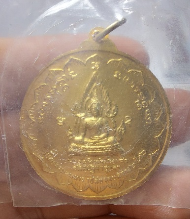 ด้านหลังเป็นพระรูปของ พระสัพพัญญูเจ้า พระประธานในพระอุโบสถวัดสุปัฏนารามวรวิหาร ซึ่งเป็นพระพุทธรูปที่ศักดิ์สิทธิ์ยิ่งองค์หนึ่งในจังหวัดอุบลฯ มีอักขระขอมติดองค์พระว่า อะ อุ มะ อะ คือ อะระหัง แปลว่า ผู้ไกลจากกิเลสซึ่งหมายถึงพระพุทธเจ้า อุ คือ อุตตมะธัมโม หมายถึง พระสัจธรรมอันเลิศเมื่อพระพุทธองค์ตรัสออกมาแล้วย่อมเป็นหนึ่งไม่มีสอง และ มะ คือ มหาสังโฆ แปลว่า พระสงฆ์หมู่ใหญ่ |