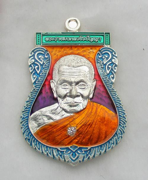 หลวงปู่อิ่ม วัดทุ่งนาใหม่ จ.นครศรีธรรมราช รุ่นเจ้าสัวพันล้าน106ปี เนื้อเงินฝังเพชร No.60