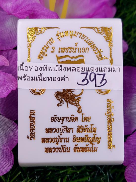 พหูรมาน หลวงปู่ศิลา เมตตาออกแบบเขียนยันต์ เนื้อทองทิพย์ฝังพลอยแดงแถมมาพร้อมเนื้อทองคำ no.393 |