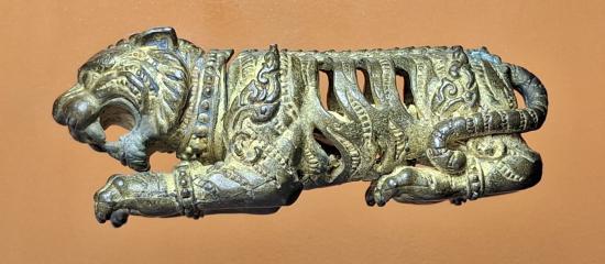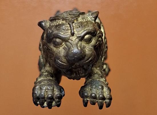 จ้าวพยัคฆ์จับเหยื่อ สอดตะกรุดทองแดง เนื้อโลหะ ความยาว 2 นิ้ว ไม่ทราบสำนัก