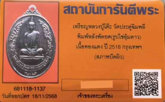 เหรียญรูปไข่ หลังพัดยศ หลวงปู่โต๊ะ วัดประดู่ฉิมพลี ปี 2518 เนื้อทองแดงรมดำ บล็อกอุ้มดาว (นิยม) สภาพสวยแชมป์ |