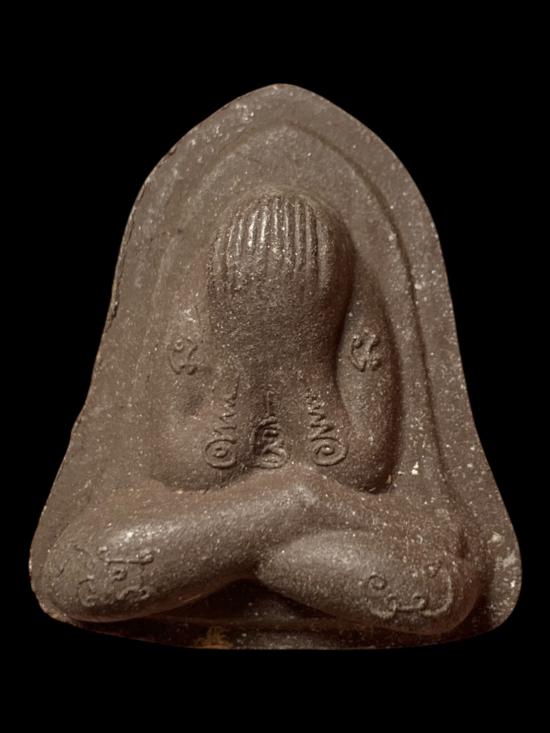 พระปิดตาเนื้อผง หลังยันต์ก้นฝั่งตะกรุด ไม่ทราบที่ครับ