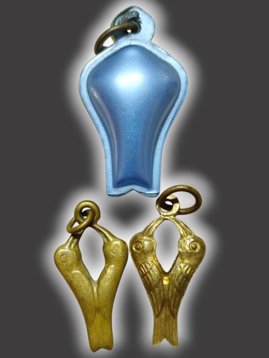 A6401.เครื่องรางของขลัง นกสาริกา ยกเซ็ต 3 ชิ้น เลี่ยมเดิม 1 ชิ้น เคาะเดียวเเดง