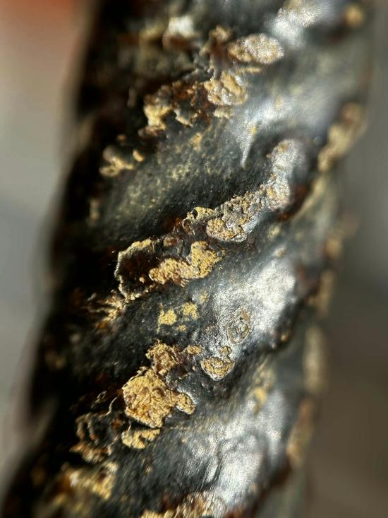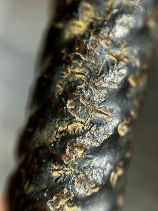 ตะกรุดสายสะพานสูงลงรักกลิ้งผงลงรักอีกทีรักออกดำอมแดงเก่าครับ |