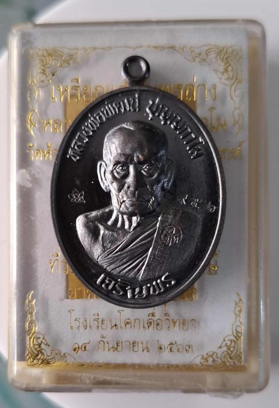 เหรียญเจริญพรล่าง 63 หลวงพ่อพัฒน์ ปุญฺญกาโม เนื้อทองแดงรมดำ เลข ๑๙๕๖ สวยๆกล่องเดิม