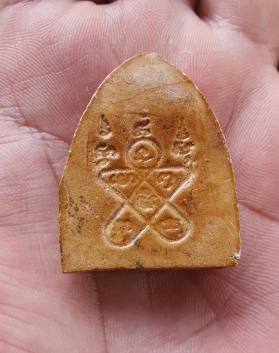 พระสภาพสวย มีขนาดสูง 3.7 x 2.8 ซ.ม. ผิวเคลือบทาด้วยยางไม้มาเดิมๆ