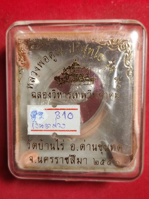 เหรียญหลวงพ่อคูณ ปริสุทโธ รุ่น ฉลองวิหารเทพ ออกวัดบ้านไร่ ปี 56 เนื้อ เงินลงยาสีม่วง หมายเลข 810 เลี่ยมพร้อมใช้ เคาะเดียวแดง |