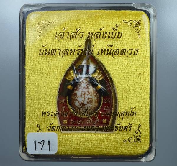 ราหูอมเบี้ย หรือเจ้าสัวหลังเบี้ย พระอาจารย์สัญญา วัดกลางบางแก้ว ทองทิพย์ลงยา เลขหาม 171 เช่า 1 ได้ 3 พุทธคุณ รับประกันพระแท้ตลอดชีพ