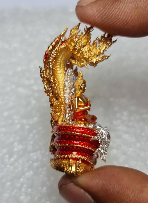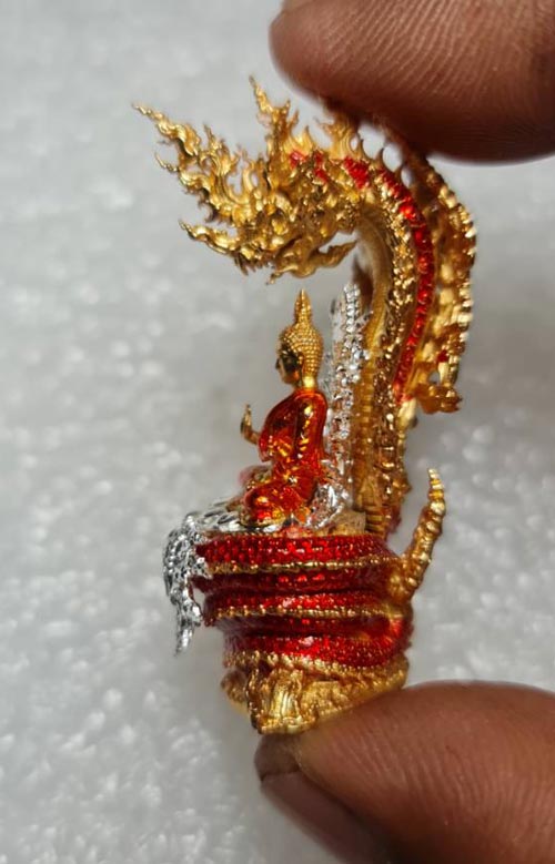 พระนาคปรก รุ่น "พรภควันต์" วัดลอน พัทลุง รายการที่ 9 องค์พระบรอนซ์ชุบเงินลงยาจีวรสีส้ม ฐนนากบรอนซ์ชุบทองลงยาแดง หมายเลข 373 พร้อมกล่องเดิมๆครับ (จอง 1,600)