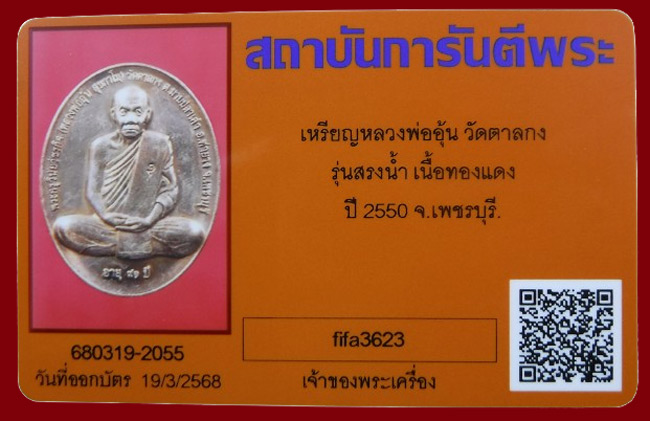 แดงที่เคาะแรก !!! เหรียญรุ่นสรงน้ำ พิมพ์ใหญ่ หลวงพ่ออุ้น วัดตาลกง ปี2550 + บัตรพระแท้