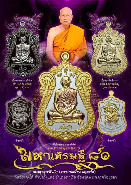 เคาะเดียวแดง 150 ( 2 เหรียญ ) เหรียญรูปเหมือน หลังหนุมาน8กรขี่สิงห์ รุ่น มหาเศรษฐี๘๐ หลวงพ่อเอื้อน วัดวังแดงใต้ จ.พระนครศรีอยุธยา เนื้อโลหะชุบ สามกษัตริย์ กล่องเดิม |