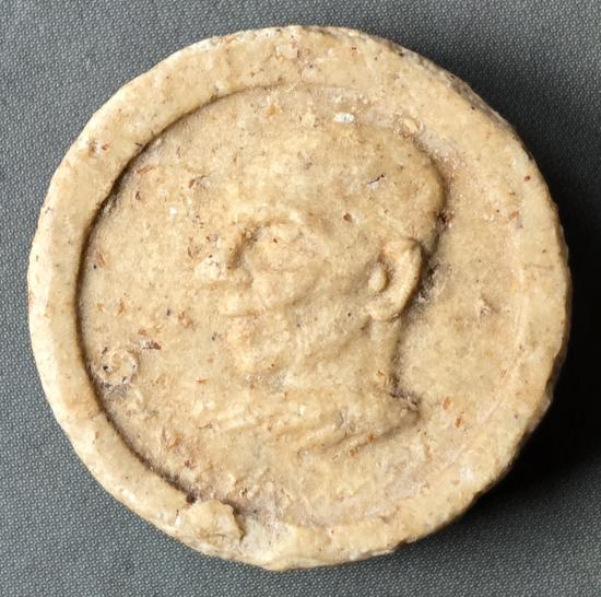 พระผงจันทร์ลอย หลวงพ่อเกษม เขมโก ปี 2515 ด้านหลังติดสีผึ้ง และเกษาหลวงพ่อครับ พร้อมกรอบสแตนเลสพร้อมใช้ครับ