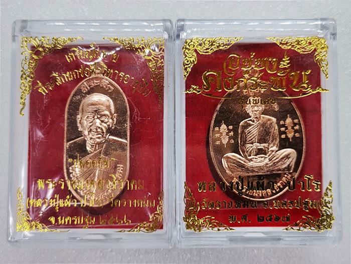 รวม 2 เหรียญ .. ใบพาย (รุ่นแรก) + อยู่ยง คงกระพัน หลวงปู่แผ้ว ปวโร วัดรางหมัน จ.นครปฐม พร้อมกล่อง