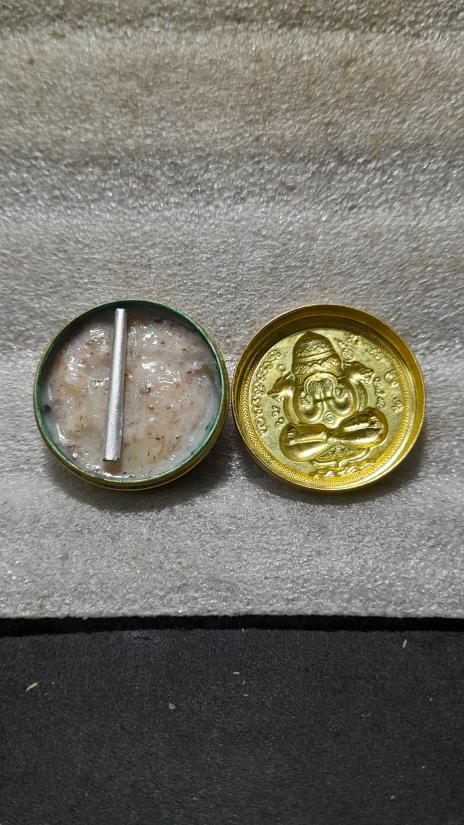วัดใจเคาะเดียว........150....... ตลับสีผึ้งพังพระกาฬ ฝังตะกรุดเงิน + รอยจาร + โค๊ต + เลข ๘๒๓ สวย ไม่ทราบที่ |