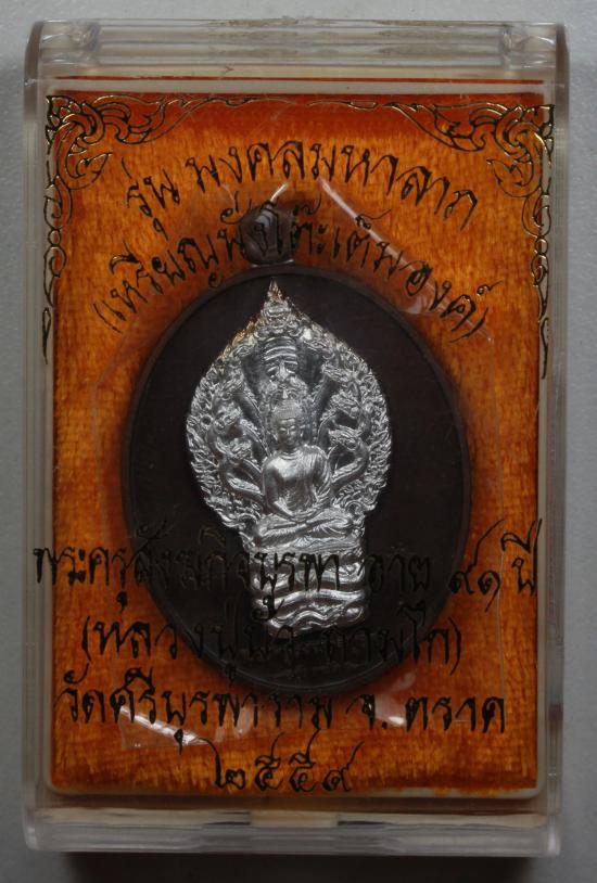 ชื่อพระเครื่อง เคาะเดียวแดง เหรียญนาคปรกเนื้อนวะหน้าเงิน รุ่น มงคลมหาลาภ หลวงปู่บัว ถามโก วัดศรีบุรพาราม พศ.2559 หมายเลข No.613