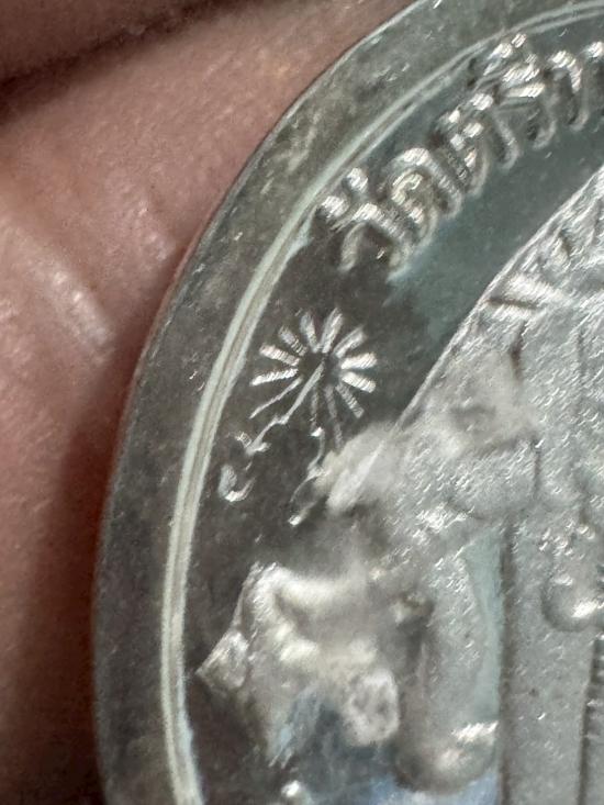 เหรียญ รัชกาลที่ 5 หลังช้างสามเศียร วัดตรีทศเทพ ตอกโค๊ต เนื้อเงิน น้ำหนัก 12.7 กรัม ตอกโค๊ต ชฎา และ ยันต์