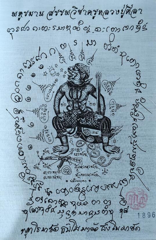 ผ้ายันต์พหูรมานรุ่นแรก แจกในพิธี โดยหลวงปู่ศิลาปลุกเสก no.1896 |