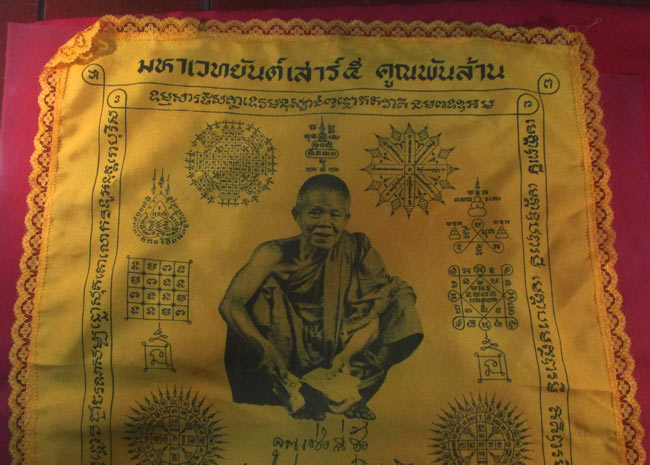 ผ้ายันต์ มหาเวทยันต์เสาร์ ๕ คูณพันล้าน หลวงพ่อคูณ วัดบ้านไร่ อ.กุดพิมาน อ.ด่านขุนทด จ.นครราชสีมา ครับ (พระบ้าน ครับ) |