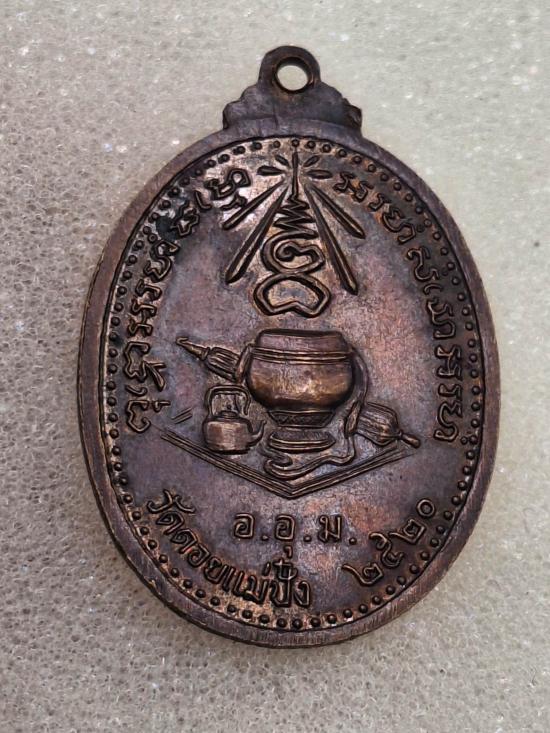 เหรียญหลวงปู่แหวน สุจิณฺโณ วัดดอยแม่ปั๋ง ปี 2520 พิมพ์รูปไข่ นั่งสมาธิเต็มองค์