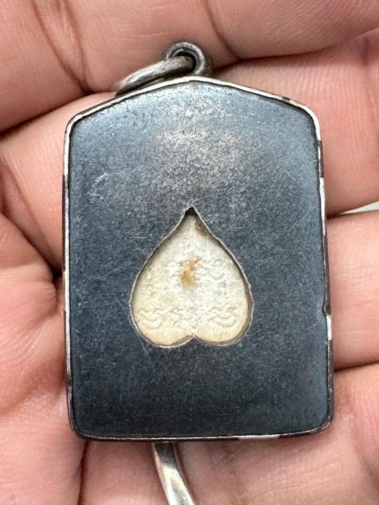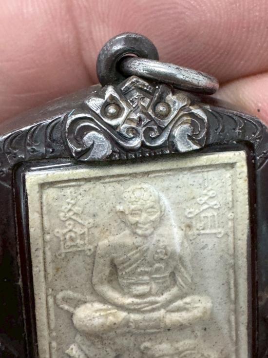 พระผงรูปเหมือน หลวงพ่อเปิ่น วัดบางพระ รุ่นสมปรารถนา ปี 2537 เลี่ยมจับขอบเงินเก่า น้ำหนักกรอบเงิน 17.3 กรัม