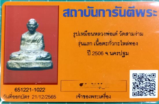 รูปหล่อโบราณหลวงพ่อเต๋ วัดสามง่าม รุ่นแรก เนื้อตะกั่วกะไหล่ทองเดิมๆ ปี 2506 จ.นครปฐม (พร้อมบัตรรับรองพระเครื่อง)หายากมากคับพบเจอะน้อยคับสำหรับตะกั่วกะไหล่ทองเดิมๆ มีใบรับรองสบายใจได้คับ ราคาไม่เเรงเหมือนเมื่อก่อนเก็บรอรอบคับสวยเดิมๆเลี่ยมเก็บผิวใช้ได้เลยคับ