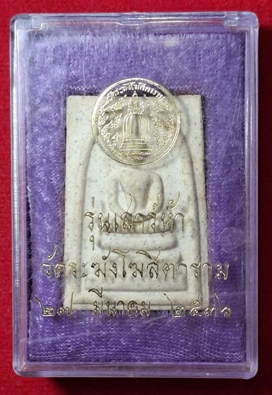 พระสมเด็จ เสาร์๕-รุ่นแรก วัดระฆังโฆสิตาราม ปี2536 พระสมเด็จสภาพสวยเดิมๆเลยนะครับ เป็นพิมพ์นิยม-เกศทะลุซุ้ม ที่ด้านหลังปั้มตราชัดเจน และมาพร้อมกล่องเดิมๆด้วยนะครับ |