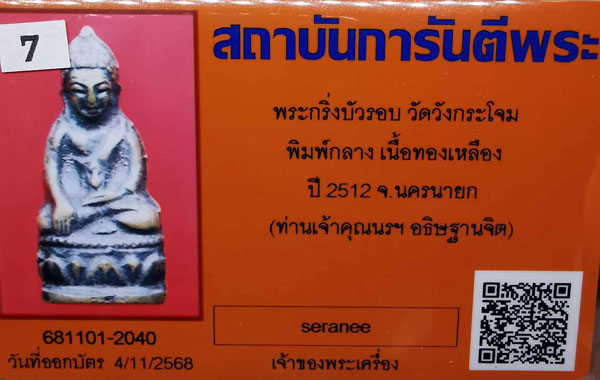 พระกริ่งบัวรอบ วัดวังกระโจม พิมพ์กลาง เนื้อทองเหลือง กริ่งดัง ปี2512 จ.นครนายก(ท่านเจ้าคุณนรฯ อธิษฐานจิต) + บัตรG-pra สภาพเดิมค่ะ สภาพตามรูปทุกประการค่ะ