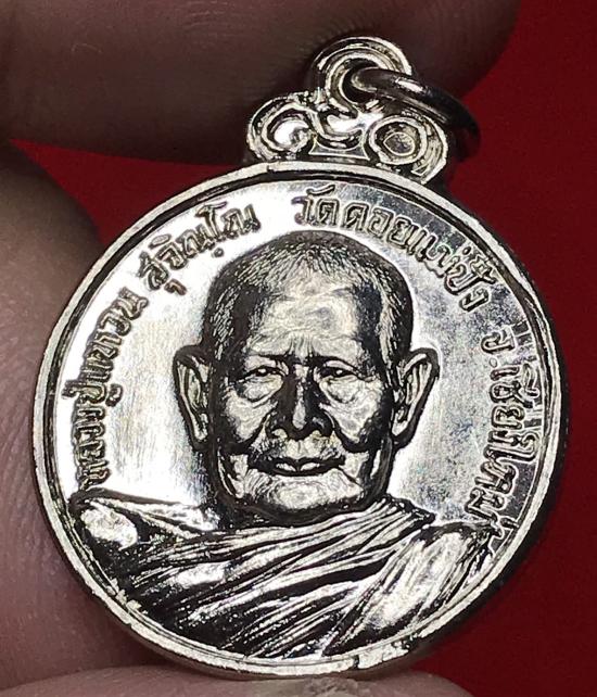 เหรียญกลมหลังร่มโพธิ์ หลวงปู่แหวน สุจิณฺโณ วัดดอยแม่ปั๋ง อ.พร้าว จ.เชียงใหม่ ปี 2521 กะไหล่เงิน สภาพสวยๆครับ