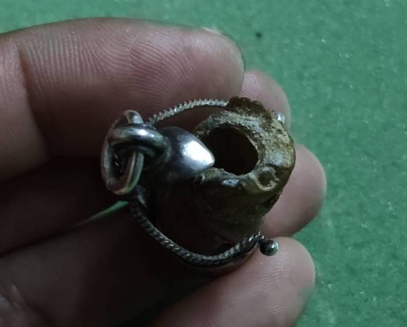 เขี้ยวโปร่งฟ้าแกะเสือเนื้อเก่าจัดจ้านมากๆพร้อมกระเลี่ยมกระเช้าเงินเก่า (ไม่ทราบที่ไม่ยัดเข้าหลวงพ่อเกจิอาจารย์ท่านใดๆสร้างนะครับ)