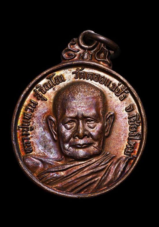 เหรียญหลังพุทโธ หลวงปู่แหวน สุจิณโณ วัดดอยแม่ปั๋ง จ.เชียงใหม่ เนื้อทองแดง ปี 2521