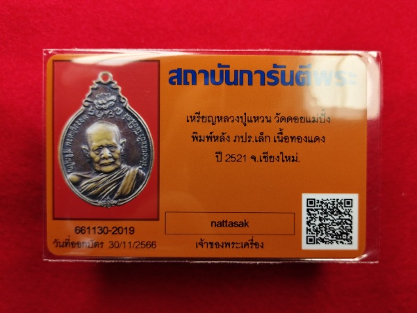เหรียญ สร้างตึกโรงพยาบาล หลัง ภปร.เล็กจหลวงปู่แหวน ปี 2521 เนื้อทองแดงพร้อมบัตรรับรอง |