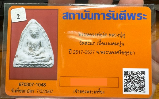 พระหลวงพ่อโต เนื้อผงกรรมฐาน หลวงปู่ดู่วัดสะแก มาพร้อมบัตรรับรอง