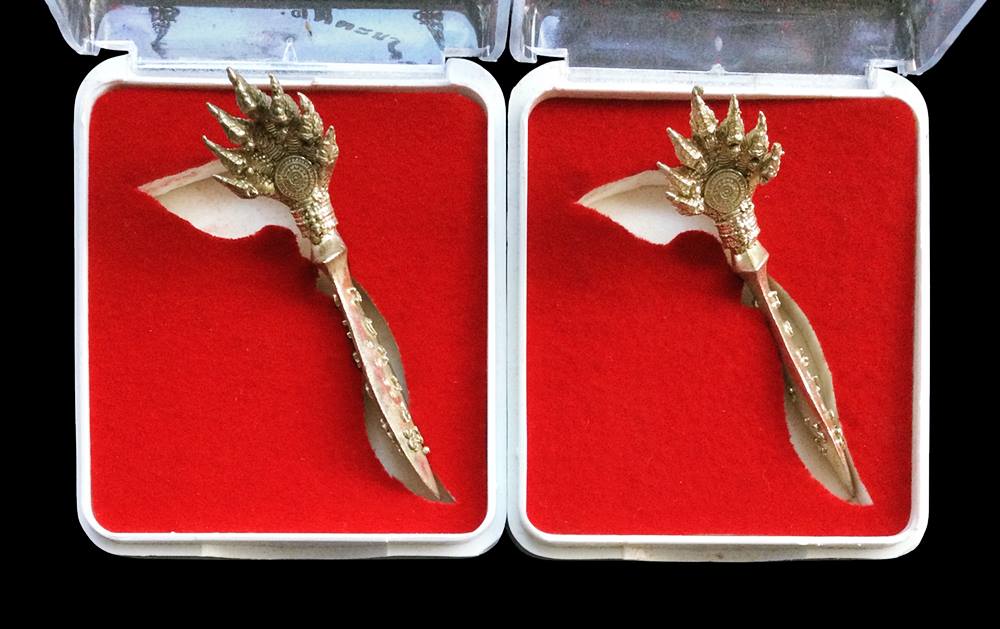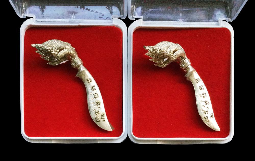 +!!เคาะเดียวllดง ตลอดสาย!!+ (รับ 2 องค์) มีดสัตตะนาคราช รุ่น รวย รวย รวย (พญานาค7เศียร) วัดถ้ำวังผาพญานาคราช จ.อุบลราชธานี ปี2560 ขนาดกว้าง 1.5 ซ.ม. สูง 6 ซ.ม. มีเลขโค้ดตามรูป พร้อมกล่องครับ