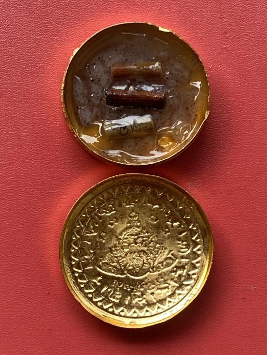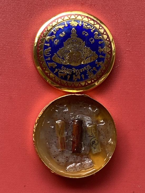 เคาะเดียวแดง สีผึ้งพระราหู รุ่น มงคลจักรวาล เนื้อ โลหะชุบทองลงยาสี นำ้เงินขอบสีแดง ขนาด5ซม |
