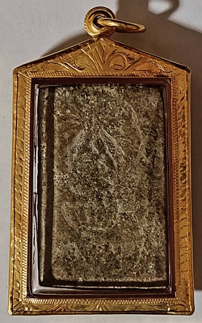 พระผงมงคลมหาลาภ พิมพ์กลาง เนื้อเขียวก้านมะลิ ปี 2499 (คุณแม่บุญเรือนอธิษฐานจิต) เลี่ยมทองพร้อมใช้ รางวัลที่ 1 งานศูนย์ราชการ