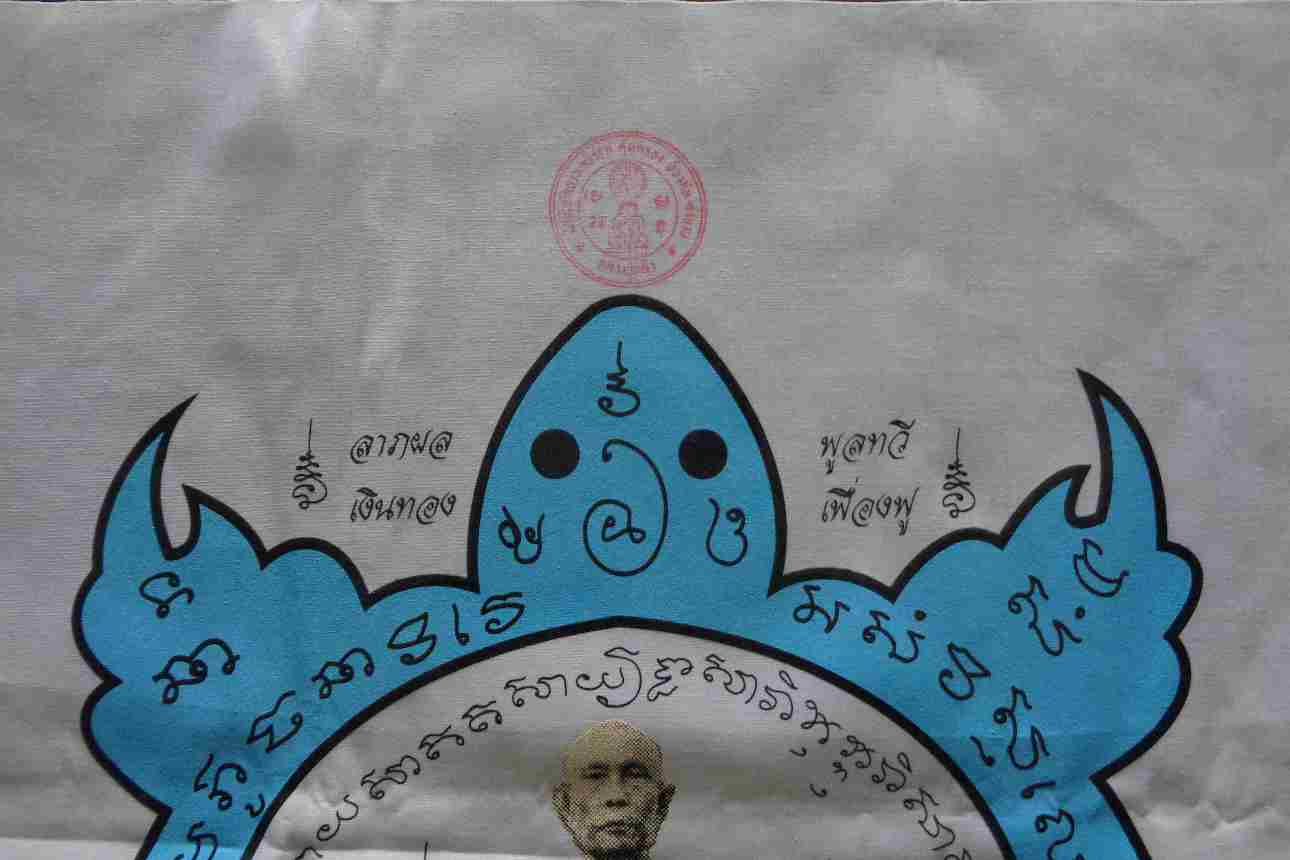 หลวงปู่หลิว ผ้ายันต์ รุ่นรวยยั่งยืน ผืนใหญ่ สีฟ้า ((((( ขนาด 48 x 68 ซม. ))))) เลข 48 สวยเดิม รับประกันตามกฏของเว็บเก๊คืนเต็มครับ