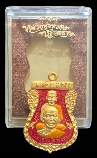 เหรียญเสมาพุฒซ้อนหลวงปู่ทวด-พระอาจารย์ทิม รุ่นนิรันตราย พ่อท่านเขียว วัดห้วยเงาะ จ.ปัตตานี ปี 2557 + เนื้อกะไหล่ทองลงยาแดง + หมายเลข ๗๗๖ สภาพพิมพ์คมชัดสวยงาม จัดสร้างน้อย มาพร้อมกล่องเดิมๆจากวัด