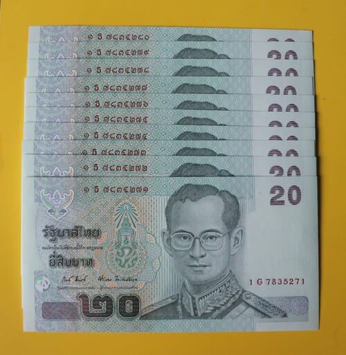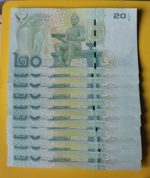 "เคาะเดียว" ธนบัตรแบงค์ 20 บาท แบบ 15,แบบ 16 และแบบ 16.5 เลขเรียงอย่างละ 10 ฉบับ unc |