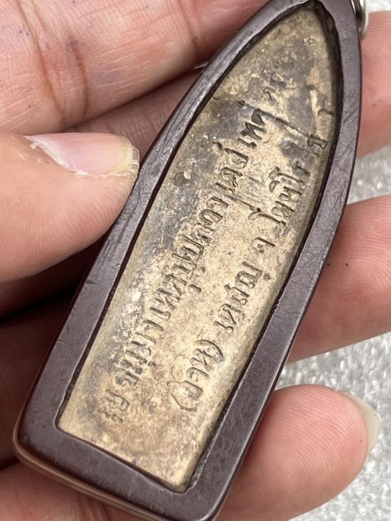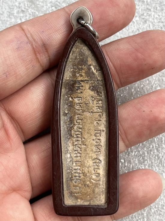 พระลีลาเนื้อดิน หลังภาษาบาลี ไม่ทราบที่ เลี่ยมเก่า