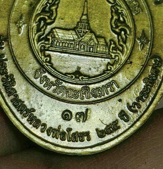 เหรียญแจกในพิธีปลุกเสก หลวงพ่อโสธร รุ่นประวัติศาสตร์ ครบรอบ255 ปี (วาระพิเศษ) ตอกโค๊ต แจก ตอกหมายเลข 17