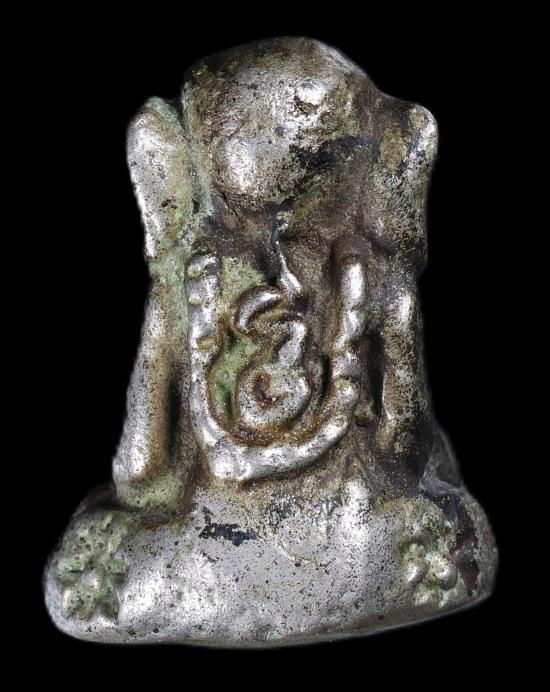 ปิดตาพระพิฆเนศ ตอกดอกจันทร์ ศิลปนครศรีธรรมราช เนื้อสำริดเงิน |