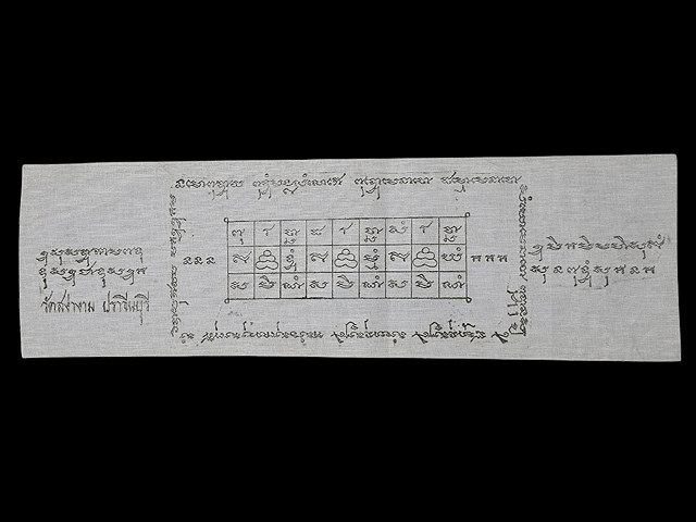 ***ผ้ายันต์กันฟ้า ขนาด 6x16 นิ้ว หลวงพ่อผิว วัดสง่างาม จ.ปราจีนบุรี ปี 2515*** |