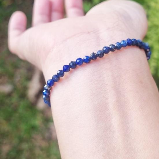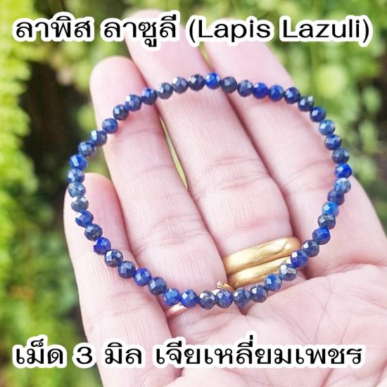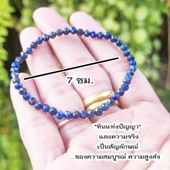 ข้อมือลาพิส ลาซูลี (Lapis Lazuli) สีน้ําเงินเข้มเจียระไนเหลี่ยม หินแห่งปัญญา และความจริง สัญลักษณ์ของความสมบูรณ์ ( ของใหม่ ) |