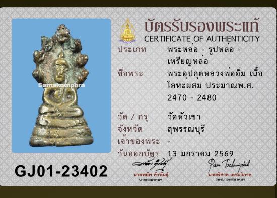 ชื่อพระเครื่อง พระนาคปรก หลวงพ่ออิ่ม วัดหัวเขา พร้อมบัตรรับรองสมาคม