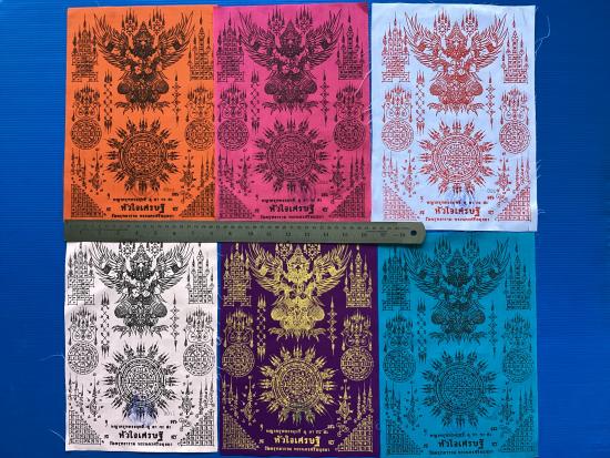 เคาะเดียวแดง 350 ผ้ายันต์ พญาครุฑทรงฤทธิ์ อุ อา กะ สะ หัวใจเศรษฐี วัดครุฑธาราม พระนครศรีอยุธยา ขนาด A4 ( 7 ผืน ) แจกในพิธี |