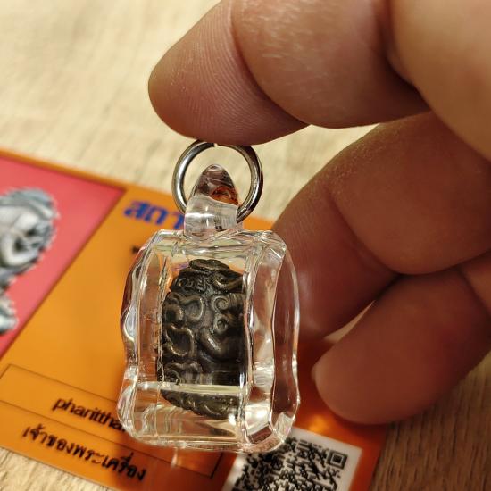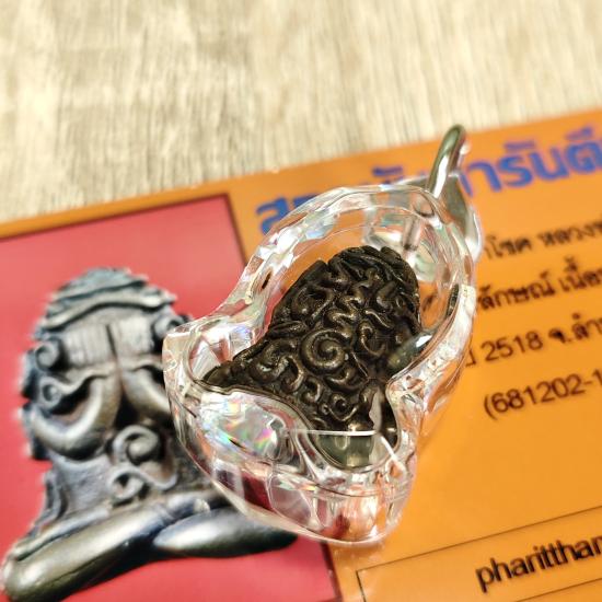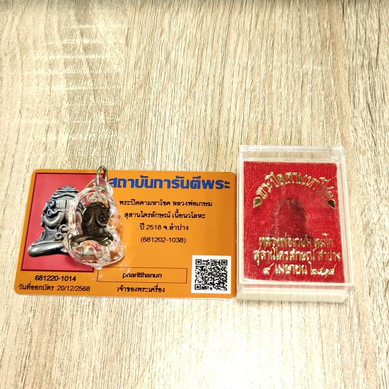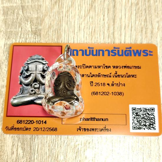 พระปิดตามหาโชค หลวงพ่อเกษม เขมโก สุสานไตรลักษณ์ 2518 เนื้อนวะโลหะ บัตรรับรอง+กล่องเดิม+เลื่อมเลนส์เหลี่ยมเพชร